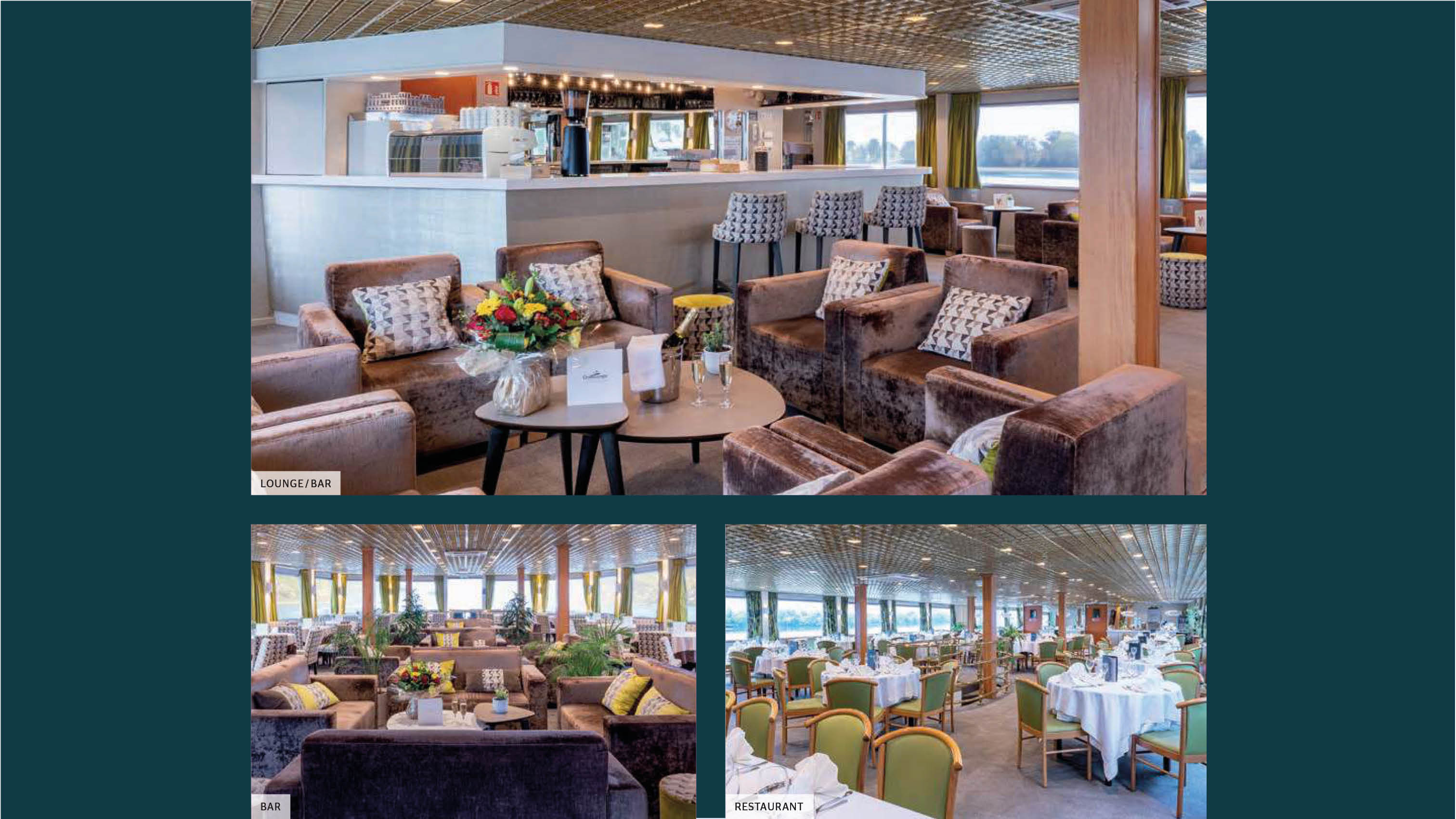 På elvecruiset vårt bur vi svært godt på MS France (4 stjerner), ein hyggeleg elvebåt med 78 lugarar som alle er utvendige. Lugarane har også bad med dusj, hårtørkar, TV, safe og aircondition. Alle måltida om bord med nydeleg mat og drikke er inkluderte.